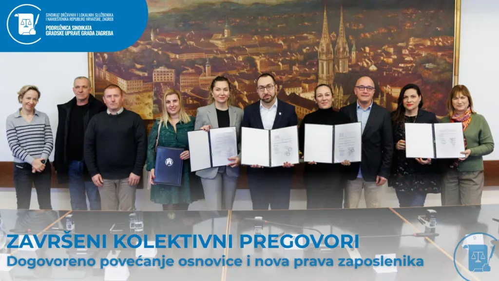 Završeni su kolektivni pregovori za zaposlene u ustanovama socijalne skrbi kojima je osnivač Grad Zagreb te za službenike i namještenike zaposlene u gradskim upravnim tijelima Grada Zagreba.